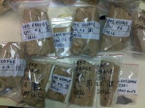 Shell artefacts from the Lake George collection. Part of a huge midden with many layers!