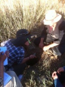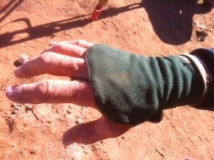 Strutting their stuff on the ‘Red Dust Carpet’ at Redbanks for the April 2012 Field Methods Field School were archaeology students, staff and helpers. Little did anyone realise that as a first time Arch student I was rating the dress sense of my more seasoned colleagues for ‘Fashions in the Field’ Awards. Unlike the red carpets of Paris and Milan, my points were awarded for being practical, safe, dustproof, sun-smart, bite- proof, as well as imaginative and stylish. Participants needed to follow the basic clothing requirements in the course handbook: long sleeve shirt, long pants, wide brim hat, sturdy shoes.