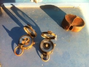 Artistic Accessories – Bob, with his green anticancer gloves, Matt, with his burnt orange Egyptian scarf, and Viki, with mauve polished nail, were eye catching. Britt, with rings on her fingers and bells on her toes, lost points when her precious metal interfered with readings on Julie’s and Rob’s matching WW1 era compasses. But accessory princess was Amanda, who matched her blue & white bandanna with her nail decal on perfect acrylic nails.