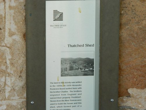 In 1992, a heritage survey was undertaken in the City of Tea Tree Gully. One of the heritage places listed in the survey was the “Thatched Shed”, or, as I am more familiar with it, “Boord House”. The description of the house was a good equivalent of two paragraphs, complete with a picture, and some information on the location, but I was admittedly shocked when I saw the number of references these consultants had used: a grand total of two, one of which was an “historic marker on site” – which could have been either the memorial plaque outside the depot, or the little plaque installed on one of the walls of the house.