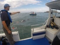 Our next plan was to record the shipwreck of the yacht Pisces Star, located at Cape Banks. The wreck is located 30 metres offshore in a strong tidal zone. We were able to take photos of the vessel, a GPS position and compass bearings. We would have liked to take measurements of the wreck but it was not possible due to the strong swell and the danger of a diver being caught in the strong currents.