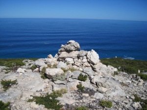 The intrepid explorers located the cairns that had been erected by the May family to indicate where the Loch Sloy went down, and some features near the cliff that looked like graves because of their orientation and the formal layout of rocks. The rangers at Flinders Chase were very helpful in suggesting different routes to the site that might prove less exacting.