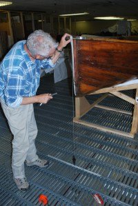 Figure 2: Bill Leonard establishing the centre line using a plumb bob. (W. van Duivenvoorde 19 September 2012).