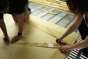 Figure 4: Kurt and Janet marking the joggle stick position on the MDF board. (M. Polzer 20 September 2012).