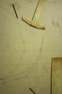 After all the points were added they were joined up and the outside shape of the clinker planking could be seen. For ship lines, however, the moulded dimensions are needed, which is the inside the planking. As the planking was 10mm thick, 10mm was taken off the drawing. Then, using a spline, a fair curve could be drawn through the points (Figure 5). It was from this curve that dimensions were taken to create the lines drawing.