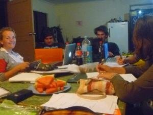 Upon arriving back at the camp, some move off to wash away the pain of the day beneath water, while other sidle off to wash away the pain by emptying glasses at the pub. As night sets in, most would think that the hunters, after having spent around nine hours working outdoors, battling sun, dirt and flies, would retire to their beds and recuperate, ready for the burden of the following day. But instead they gather in the meeting room and arrange themselves around the long table and begin the task of arranging what they have recorded during the day. Once again these hunters take up their instruments and tools and push on into the night. Eventually the group comes to a consensus and then in gradual waves, so as to not leave a comrade behind, they break away to collapse into their tents, to catch a few hours sleep before repeating the process all over again.